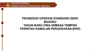 PROSEDUR OPERASI STANDARD (SOP BAHARU TAHUN BARU CINA SEMASA TEMPOH PERINTAH KAWALAN PERGERAKAN (PKP) Sumber: Majlis Keselamatan Negara -UPDA 2/8/2021, 8:29:29 PM